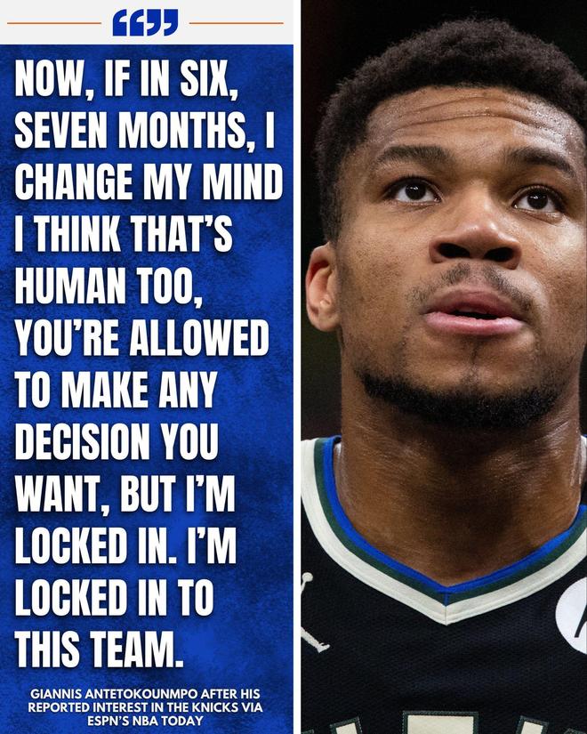 隨后字母哥話鋒一轉(zhuǎn):當(dāng)然,如果6-7個月后我改變了主意,我認(rèn)為這也是人之常情,因?yàn)槲矣袡?quán)做出我覺得對的事情,可我現(xiàn)在是專注于雄鹿,全身心的投入在雄鹿這支球隊(duì)中。