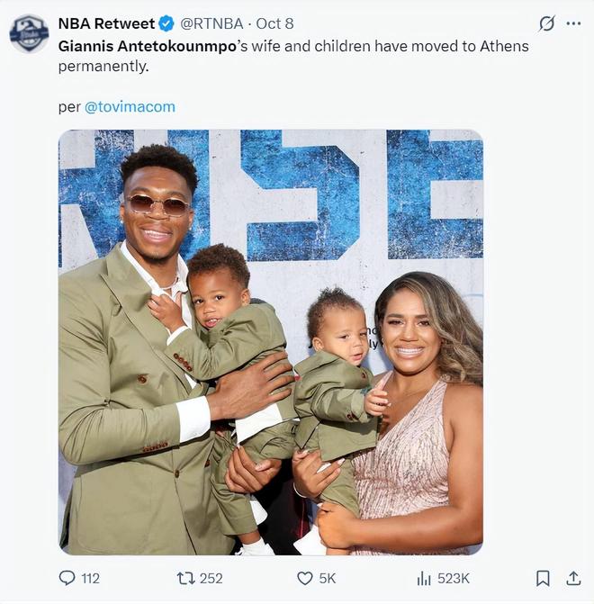 10月8日有媒體透露揚(yáng)尼斯的妻子已經(jīng)和他的孩子永久搬遷到希臘,而全美只有紐約存在直達(dá)希臘的航班。(此前揚(yáng)尼斯的妻子與孩子都是居住在密爾沃基)