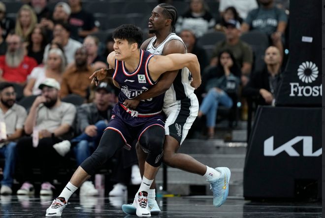 上一場(chǎng)對(duì)陣馬刺,哪怕對(duì)方有文班亞馬,陳國(guó)豪打的依然毫無(wú)懼色,三分、補(bǔ)籃,打得虎虎有聲,成為廣州本土球員中唯一一個(gè)得分上雙的球員。