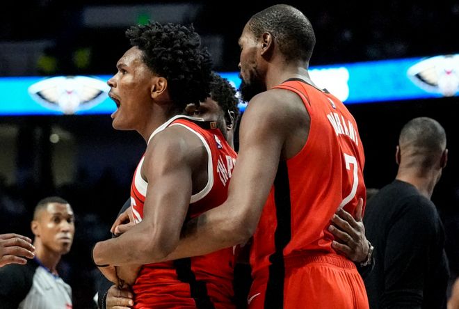 火箭用團隊攻勢戰(zhàn)勝鵜鶘取勝,尤其是史密斯26分、阿門21分與伊森20分,3位才俊均是轟下20+成為率隊取勝的功臣,杜蘭特15分與準(zhǔn)三雙的申京也是表現(xiàn)不俗。