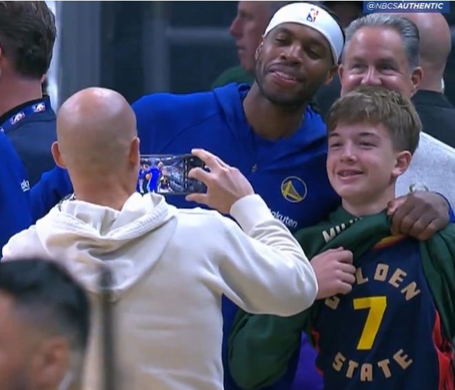 巴特勒不敢相信雄鹿主場有球迷穿希爾德球衣,希爾德暖心上去合影。