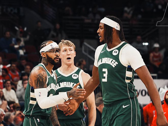 雄鹿雖然一整個(gè)夏天也處在漩渦中,管理層非常害怕字母哥主動(dòng)提出離隊(duì),為此還簽下字母哥的二哥和五弟,字母哥雖然最終留下,但質(zhì)疑球隊(duì)是否有實(shí)力爭冠。開賽前四次,雄鹿3勝1負(fù),字母哥更是送上場均36.3分14籃板7助攻的夸張數(shù)據(jù),兩項(xiàng)命中率高達(dá)69%+57%!不過比較意外的是,賽前雄鹿官方確認(rèn),字母哥因左膝蓋酸痛,缺席和勇士的比賽。難道球隊(duì)覺得打勇士很難贏球?勇士繼續(xù)擺出四巨頭+波斯特的首發(fā)組合,而雄鹿這邊就很寒酸了:羅林斯(勇士棄將)+AJ格林+特倫特+庫茲馬+特納。
