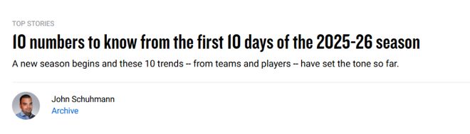 北京時(shí)間11月1日,2025-26賽季仍處于開(kāi)局階段,目前有4支球隊(duì)保持不敗,3支球隊(duì)尚未取得首勝。盡管局勢(shì)可能快速變化,但以下10組數(shù)據(jù)仍能清晰展現(xiàn)賽季前10天的關(guān)鍵趨勢(shì)。所有數(shù)據(jù)統(tǒng)計(jì)截至北京時(shí)間10月31日。