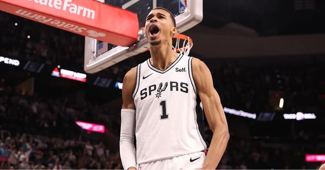 本賽季,文班亞馬場均25.6分12.9籃板3.1助攻1.3搶斷4.1蓋帽,投籃命中率為50.8%