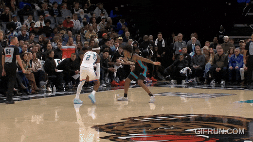 反擊,看庫明加鎖自己右手,于是變向突破逼追夢轉胯,對抗后立刻變向,低手上籃,2+1:很少看見追夢被步伐完全戲耍的2+1。